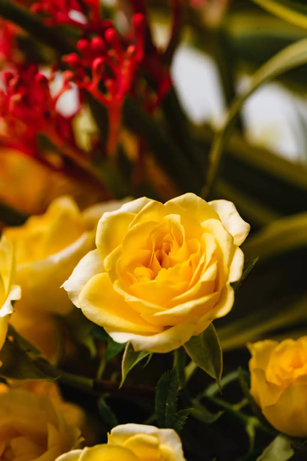 Leveza e exuberância Um mix de rosas e mini rosas com flores do campo e diversas folhagens em um lindo arranjo no vidro. A sensação de leveza e exuberância farão parte do seu ambiente Aproximadamente 30 cm de largura e 40 cm de altura.